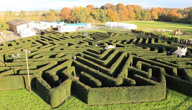 Im Schlossgarten befindet sich ein riesiges Labyrinth aus 2400 Eibenbäumen. Hat man die Mitte erreicht, kommt man durch eine unterirdische Grotte zurück in die Zivilisation.