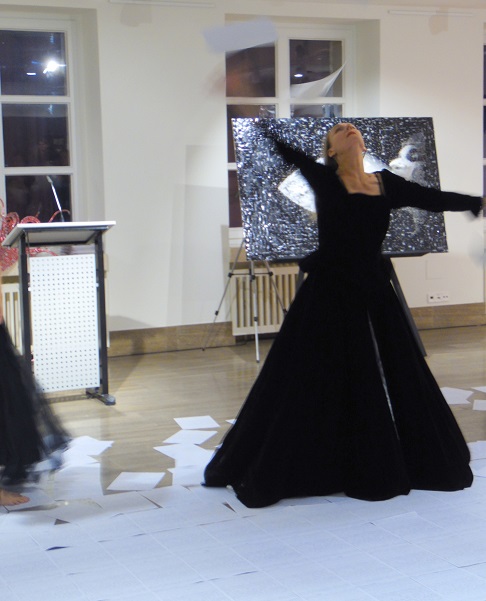 Schon die Eröffnung der Ausstellung wurde zu einem Erlebnis: Zu sehen gab es eine faszinierende choreografische Intervention zwischen den Arbeiten von Nikos Floros und den Tänzerinnen Julie Shanahan und Tsai-Chi Yu des Tanztheaters Wuppertal Pina Bausch. Oberbürgermeister Thomas Geisel begrüßte die Gäste: „Nikos Floros trifft mit seiner Kunst den Nerv der Zeit. Denn seine raumgreifenden Arbeiten sind nicht nur beeindruckende kreative Werke, sondern darüber hinaus verweisen sie auf ein wichtiges aktuelles Thema, auf das Thema Nachhaltigkeit.“
