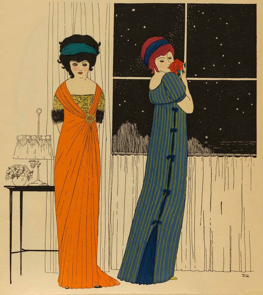 Eine Besonderheit ist das Pochoir – eine anspruchsvolle Drucktechnik mit Schablonen, häufig kombiniert mit Lithografie, Strichätzung und einem nicht geringen Anteil Handarbeit. Mit bloßem Auge sind die aufwendigen Drucke oft kaum von Aquarellen zu unterscheiden. Pochoir wird zum Inbegriff für das Genre der eleganten Mode-Illustration in Magazinen und Almanachen. Eine Reihe hervorragender Zeichner wie Paul Iribe (1883–1935), George Barbier (1882–1932) und André Édouard Martin (1882–1974) wählt dieses Verfahren als ihr Medium. In der Ausstellung wird die Technik anschaulich erläutert.