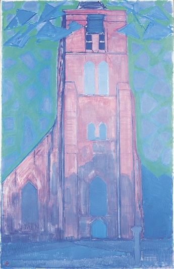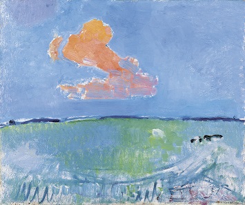 Die Ausstellung präsentierte außerdem das stimmungsvolle Werk ‚Die rote Wolke‘ von 1907, das den magischen und flüchtigen Moment einfängt, in dem eine Wolke durch die tief stehende Sonne rot gefärbt wird, wohingegen sich die Landschaft und der übrige Himmel noch strahlend blau darbieten. Das Bild gehört zu einer Gruppe von Werken, die Mondrian in der Dämmerung gemalt hat, wenn sich die Farben und Farbkombinationen stark verändern.