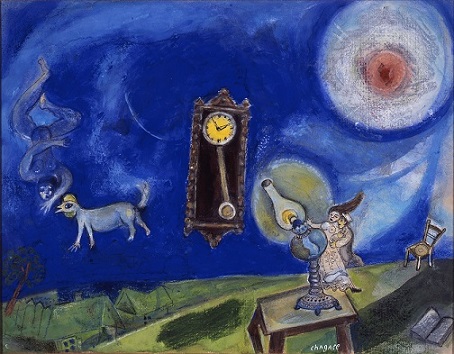 Sie präsentiert wichtige Werke der 1930er-Jahre, in denen sich Chagall vermehrt mit der jüdischen Lebenswelt beschäftigte, zahlreiche Selbstbildnisse, seine Hinwendung zu allegorischen und biblischen Themen, die bedeutenden Gestaltungen der Ballette „Aleko“ (1942) und „Der Feuervogel“ (1945) im Exil, die wiederkehrende Auseinandersetzung mit seiner Heimatstadt Vitebsk und Hauptwerke wie „Der Engelssturz“ (1923/1933/1947).