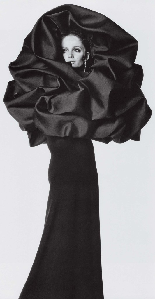 Für Balenciaga war Schwarz die ideale Farbe, um seine Kunstfertigkeit zu demonstrieren. Ohne die Ablenkung durch Farbe ist das erste, was man an einem Balenciaga-Stück in Schwarz bemerkt – sei es ein maßgeschneiderter Anzug, ein schillerndes Abendkleid oder ein voluminöses Babydoll-Kleid – das komplexe skulpturale Design. Ein zweiter Blick offenbart die reichen, oft kontrastreichen Texturen und exquisiten Details. Das Spiel des Lichts auf dem Schwarz von Balenciaga hebt den Stoff wunderbar hervor.