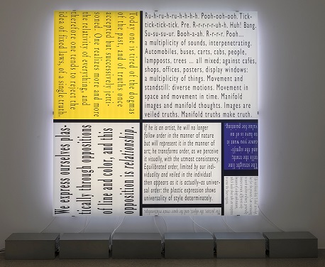 Piet Mondrians Einfluss auf folgende Künstler-/innen-Generationen wird durch verschiedene Positionen präsentiert. Sie sind nach formalen Kriterien zusammengestellt, die sich in folgende Bereiche gliedern: