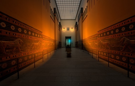 Von der ikonischen Prozessionsstraße und dem Ischtar-Tor Babylons bis zu den monumentalen Skulpturen von Tell Halaf lässt Gillick 6.000 Jahre Kunst- und Kulturgeschichte in einen Dialog treten und erzeugt so neue Bedeutungsebenen über alle historischen Perioden hinweg, die das Pergamonmuseum abbildet