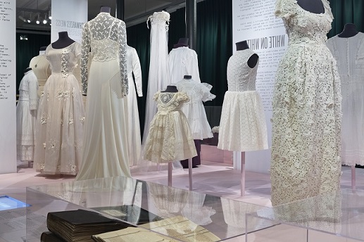 Im Textilmuseum St. Gallen drehte sich alles um die Farbe Weiß. Die Farbe des Lichts, der Wolken, des Schnees: Weiß steht für Freude, Reinheit, Unschuld, für den Neubeginn, den Frieden, die Stille, für die Leere und den Tod. Kaum einer anderen Farbe wird ein ähnlicher Symbolgehalt beigemessen, der sich auch in unseren Kleidungsgewohnheiten spielte die Geschichte der Mode schon früh eine Rolle.