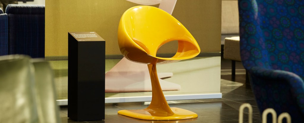 Oben: Poly-COR, 1968, Kunststoffschlaufenstuhl für COR in der FIrmenausstellung, Foto: COR-Sitzmöbel,
