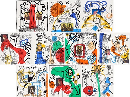 Entlang thematischer Räume zeigt die Ausstellung, dass die Werke von Warhol und Haring aus den 1970er- und 1980er-Jahren nicht nur in einer Zeit extremer gesellschaftspolitischer Spannungen entstanden, sondern auch heute noch höchst aktuell sind. Die Auseinandersetzung beider Künstler mit der exzessiven Konsumkultur, den Möglichkeiten der neuen Medien, mit Queerness, Gentrifizierung, Atomkriegsängsten und Aktivismus sowie dem Streben nach Gemeinschaft in Krisenzeiten wird in der Ausstellung erfahrbar. Auch die Kehrseite der „Party of Life“ findet sich vor dem Hintergrund der schwelenden Aidsepidemie und der Auseinandersetzung beider Künstler mit dem Tod wieder. Sie wird prominent in dem vielteiligen Gemeinschaftswerk „Apocalypse“ (1988) von Keith Haring und dem Autor William S. Burroughs sichtbar, das als Neuzugang der Sammlung Brandhorst erstmals im Museum gezeigt wird. In eindrucksvollen Bildern und Texten stellen die beiden Künstler das New York der 1980er-Jahre als apokalyptische Landschaft vor.