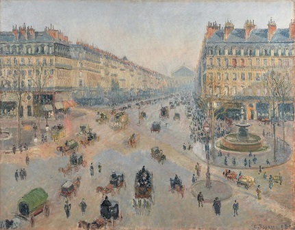 Nach Ablehnung seiner Werke im offiziellen Salon stellte er 1863 im Salon des Refusés aus. Mit Monet, Renoir und Sisley gehörte er 1874 zu den Initiatoren der ersten Impressionisten-Ausstellung. Mitte der 1880er Jahre lernte Pissarro die Neoimpressionisten kennen, deren divisionistische Technik er für kurze Zeit übernahm. Neben Landschaften entstanden in den 1890er Jahren Serien mit Ansichten von Paris.