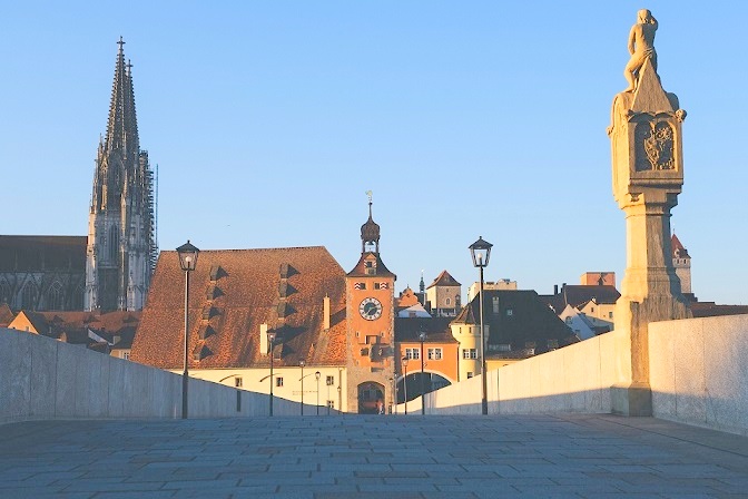 UNESCO-Welterbestadt Regensburg mittelalterliche Häuserzeilen oder schauen wie das „Bruckenmandl“ von der Steinernen Brücke zum gotischen Dom St. Peter. Straubing zeigt sich als stolze Herzogstadt und Passau von italienischen Barockkünstlern inspiriert.