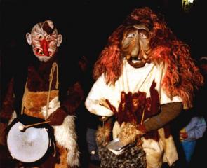 Die kunstvoll angefertigten Masken symbolisieren die Wiederkehr der sündigen Seelen, die in diesen Winternächten vergeblich um Erlösung suchend durch das Land brausen.