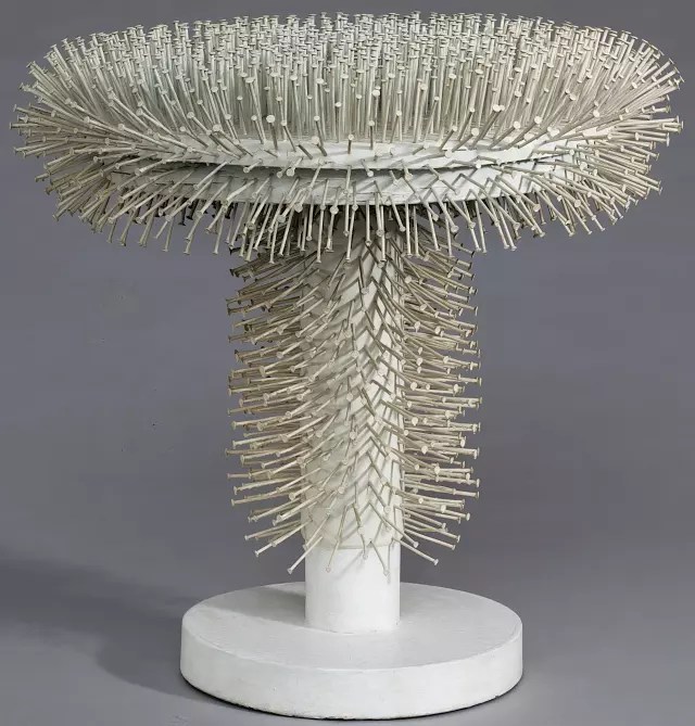 Die Ausstellung vereint Arbeiten aus allen Schaffensphasen. Neben den berühmten Nagelobjekten und -reliefs auch kinetische Arbeiten, Installationen und textile Werke.