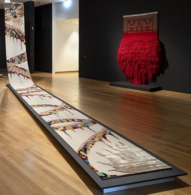 Die Teppiche der Künstler/innen fungieren somit als plakative Medien für gesellschaftspolitische Kommentare. In gleicher Radikalität sprengen sie mitunter die Grenzen der Flächigkeit: Sie loten die Möglichkeiten des Dreidimensionalen aus, und entfalten sich als textile Skulpturen und immersive Erfahrungsräume, die sich durch ihre affektive Qualität an gegenwärtigen Lebensprozessen beteiligen.