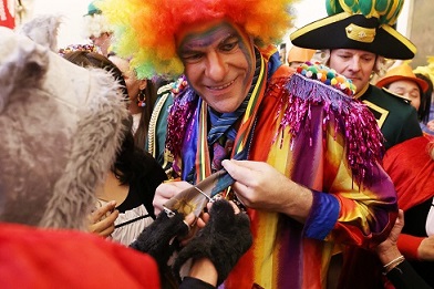 Oberbürgermeister Dr. Stephan Keller büßte unter großem Jubel seine Krawatte bei Venetia Nicole ein. Da konnte Prinz Marcus I., mit dem Venetia Nicole in der aktuellen Session die Düsseldorfer Karnevalisten regiert, nur noch staunen. Bekannte Düsseldorfer Karneval-Kult-Bands spielten auf dem Marktplatz zum Start in die ganz heiße Phase der „fünften Jahreszeit“.