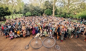 Der Tweed Run ist eine fabelhaft skurrile Veranstaltung, bei der die Teilnehmer in ihren besten Tweeds und Brogues durch London radeln und unterwegs anhalten, um Tee zu trinken, ein Picknick zu machen und am Nachmittag mit einem altmodischen Knees-up zu enden.